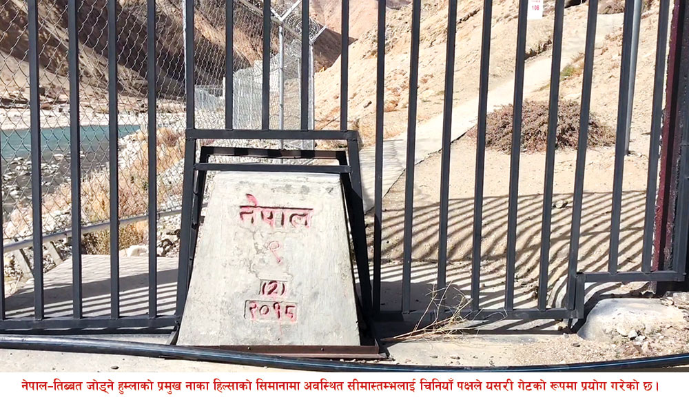 काठमाडौंमा परराष्ट्रमन्त्री प्रदीपकुमार ज्ञवालीले बेइजिङको बोलीमा लोली मिलाउँदै उत्तरी सीमा क्षेत्रको जमीन ‘एक इन्च यताउति नभएको’ वक्तव्यबाजी गरिरहेका वेला हामी हुम्लाको नेपाल–चीन सीमा क्षेत्रमा चिनियाँ पक्षबाट सीमा प्रोटोकल मिचेर गरिएका गडबडी नांगो आँखाले अवलोकन गरिरहेका थियौं ।